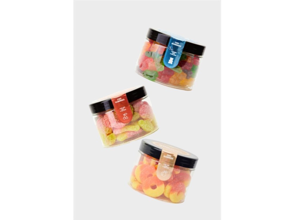 Složení: Kukuřičný sirup (z kukuřice), cukr (z cukrové řepy), voda, želatina, kyselina citronová, umělé aroma, kyselina mléčná, pektin, barviva, kokosový olej, konopný extrakt (kanabidiol – CBD).