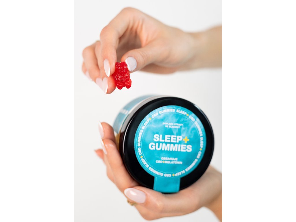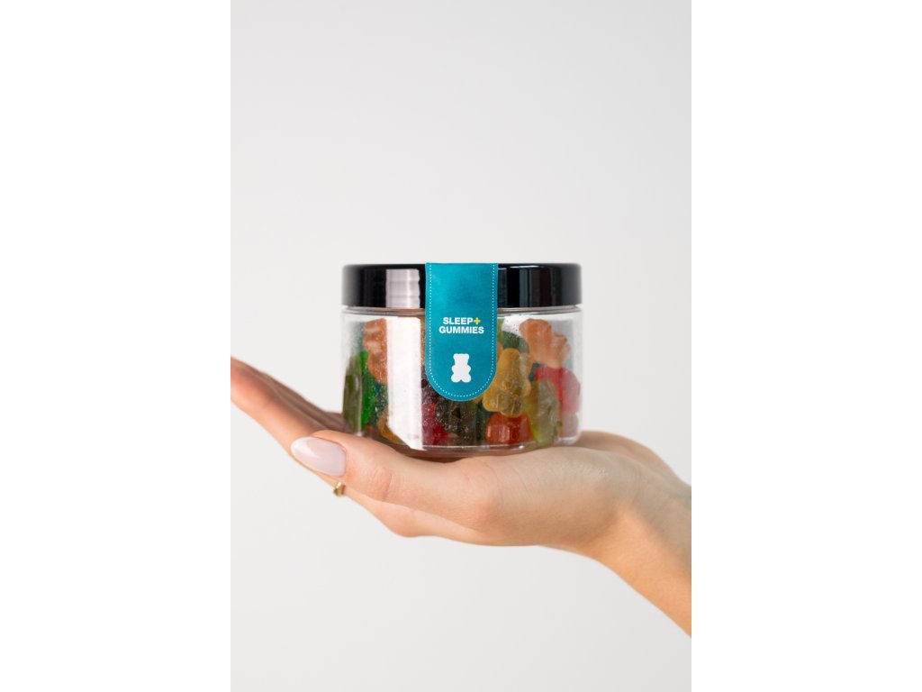 SLOŽENÍ: sladidlo: kukuřičný sirup, stevia, voda, želatina, kyselina: kyselina citronová, přírodní a umělá aromata, (třešen, červený grep, vodní meloun, jahoda, pomeranč, ostružina, limeta, hrozny, zelené jablko, mango, ananas a citron), želírující látka: pektin, leštící látky: kokosový olej a karnaubský vosk, barviva, CBD (kanabidiol) z konopí, melatonin.