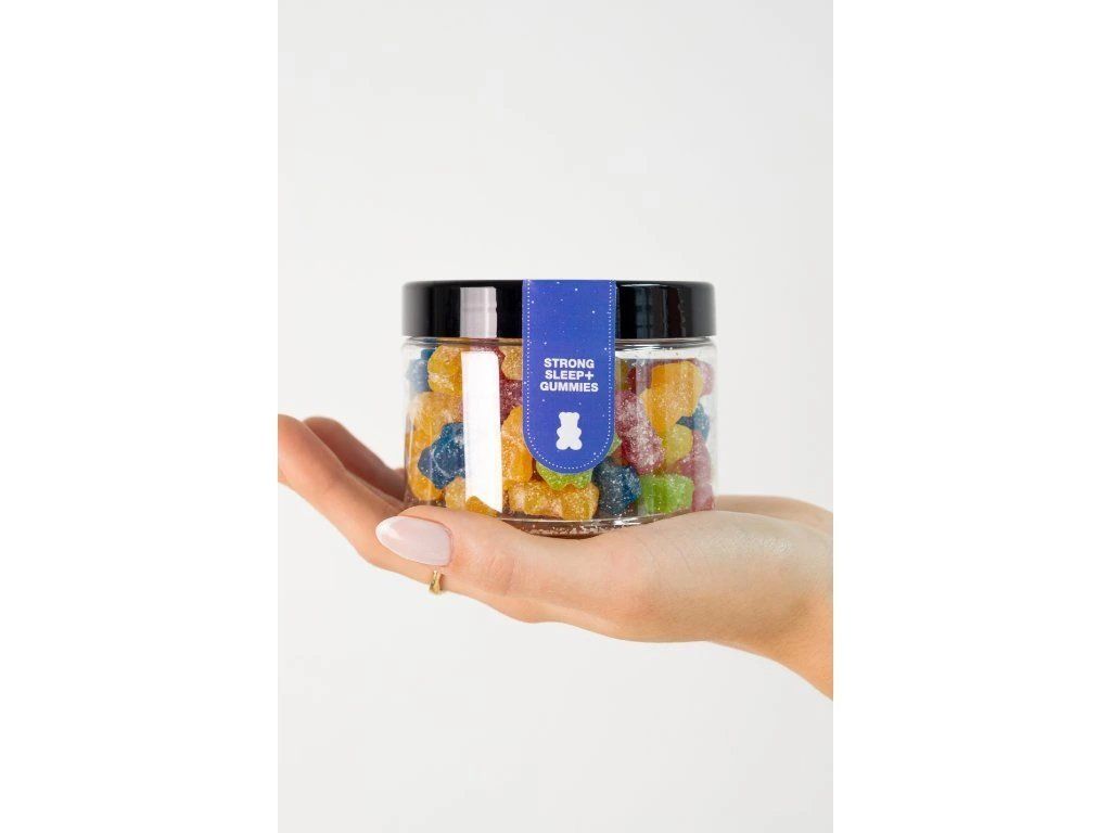 Složení: sladidlo: kukuřičný sirup, stevia, voda, želatina, kyselina: kyselina citronová, přírodní a umělá aromata, (třešen, červený grep, vodní meloun, jahoda, pomeranč, ostružina, limeta, hrozny, zelené jablko, mango, ananas a citron), želírující látka: pektin, leštící látky: kokosový olej a karnaubský vosk, barviva, konopný extrakt (kanabidiol – CBD), melatonin.